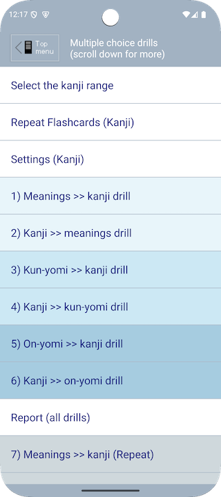 You can also mark kanji as "known" in order to exclude them from future drills, until you reset them to the "unknown" state.